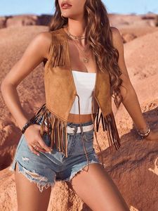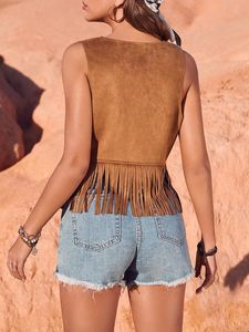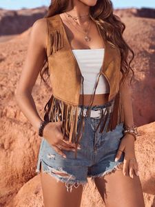 Amazon 2025 新しいタッセルジャケットレディーススエードボタンレスミドル丈ベストベストジャケットカーディガン