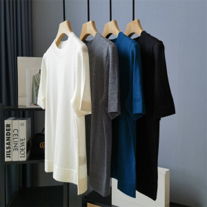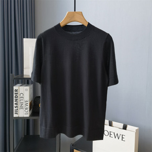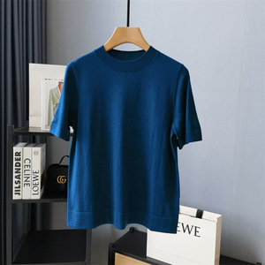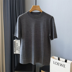 经典!简约知性气质!80支18针德国扬子羊毛针织衫短袖T恤上衣女