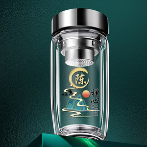 彫刻されたビジネスティーカップロゴ付き二層ガチョウの卵ガラスクリエイティブテキストメンズウォーターカップホームカーティーカップ