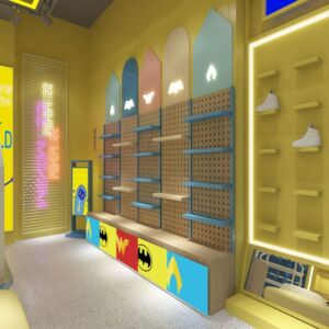 福建省全体のカスタマイズされた子供靴展示ホールディスプレイキャビネット漫画ディスプレイキャビネットライトボックスガラス特殊形状デザインストア