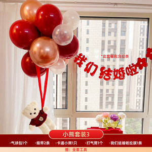 結婚式の部屋のレイアウトセット結婚式のクマの風船が空に浮かぶ婚約新居男性と女性の結婚式の部屋寝室リビングルーム