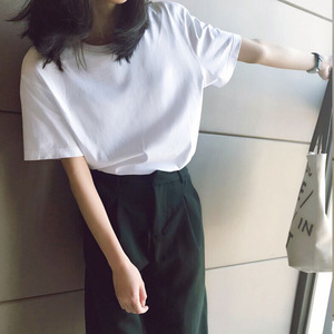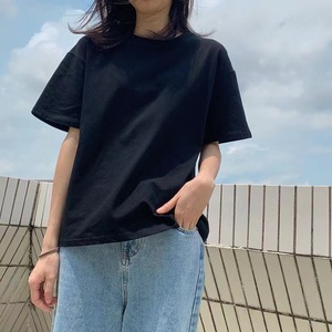 日系重ポンドtシャツ女装純綿半袖夏の新型ゆるい丸い襟の中にシャツの上着insを着る