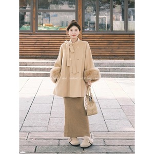 半身のスカートのスーツの小さい香風のマントは1セットの太っているmmを組み合わせて冬に入ります。