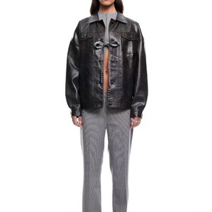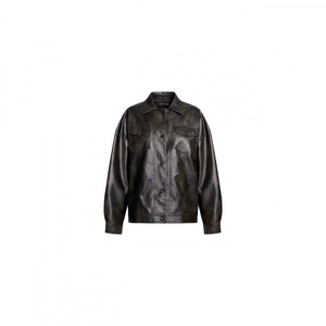 ライオンレッズレトロルーズパイロットユニセックスPUレザージャケットラペルフロントブレストレザージャケットトップ