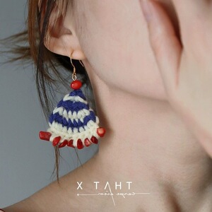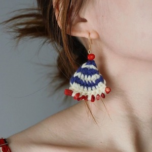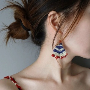 编织简约气质耳环原创设计原宿风耳饰长款感手作串珠耳钉款耳夹款