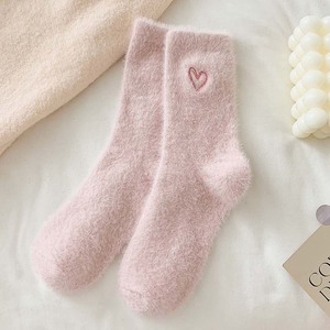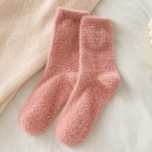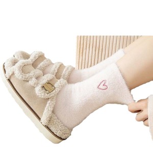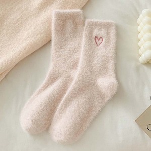 靴下女性のミッドカーフソックス秋と冬の厚みのあるミンクベルベット刺繍ラブスリーピングフロアソックス冬暖かいストッキング