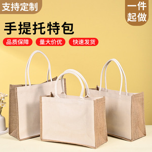 空白のリネンバッグカスタマイズされたインターネット有名人の同じスタイルのジュートリネンバッグ厚く耐摩耗性環境に優しいショッピングトートバッグ卸売