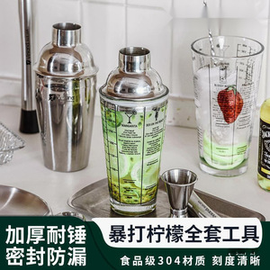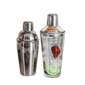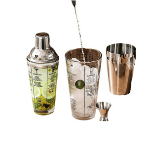 600ml ガラスボディ 304 シェーカーカップ + 32cm 304 スチールロッド + 304 バースプーン