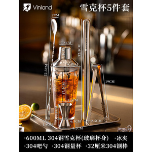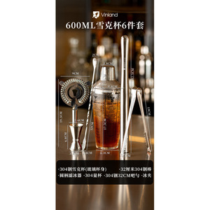 【6点セット】600mlグラス304シェーカーカップ+32cm304スチールロッド+304バースプーン+