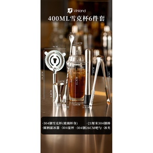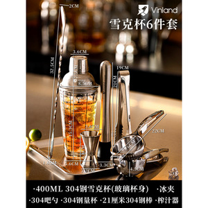 【6点セット】400mlグラス304シェーカーカップ+21cm304スチールロッド+304バースプーン+