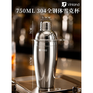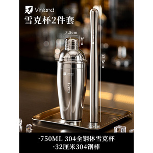 750ml オールスチール 304 シェーカーカップ + 32cm 304 スチールロッド
