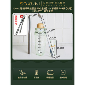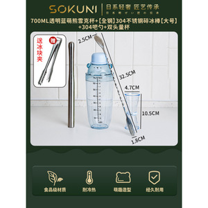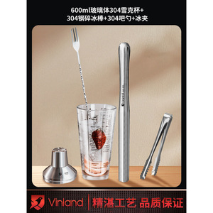 600ml ガラスボディ 304 シェーカーカップ + 32cm 304 スチールロッド + 304 バースプーン + アイスクリップ