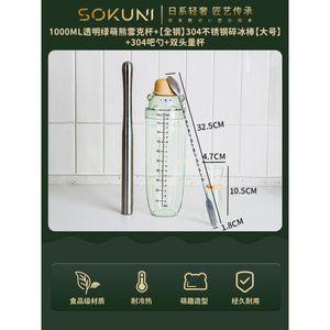 600ml ガラスボディ 304 シェーカーカップ + 32cm 304 スチールロッド + 304 バースプーン + 304 スチール容量