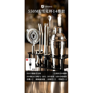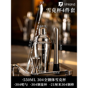 550mlオールスチールシェーカーカップ+21cm 304スチールロッド+304バースプーン
