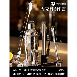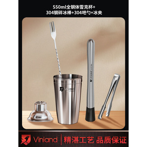 550mlオールスチールシェーカーカップ+21cm 304スチールロッド+304バースプーン+アイスクリップ