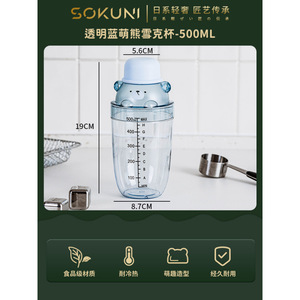 透明ブルーのかわいいクマのシェイクカップ-500ml【アイスキューブクリップ無料】