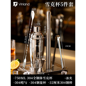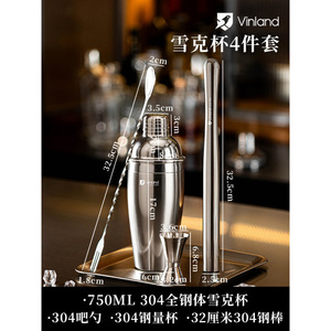 750ml オールスチール 304 シェーカーカップ + 32cm 304 スチールロッド + 304 バースプーン + 304 スチール計量カップ