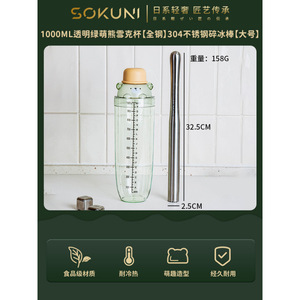1000ml 透明グリーンかわいいクマシェーカーカップ + 304 スチール砕いたアイスキャンディー 32.5 センチメートルオールスチール [無料氷]