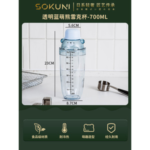 透明ブルーのかわいいクマのシェイクカップ-700ml【アイスキューブクリップ無料】