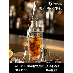 【バイ装備セット】400mlグラス304シェーカーカップ+21cm304スチールロッド+304バー