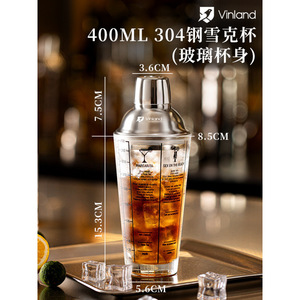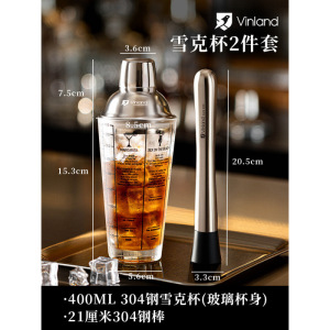 400ml ガラスボディ 304 シェーカーカップ + 21cm 304 スチールロッド