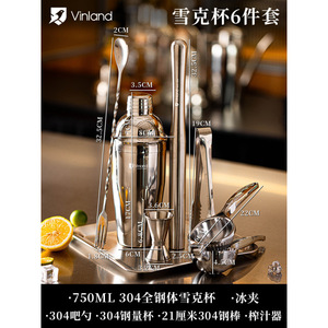 【6点セット】750mlオールスチール304シェーカーカップ+32cm304スチールロッド+304バースプーン+