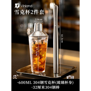 600ml ガラスボディ 304 シェーカーカップ + 32cm 304 スチールロッド