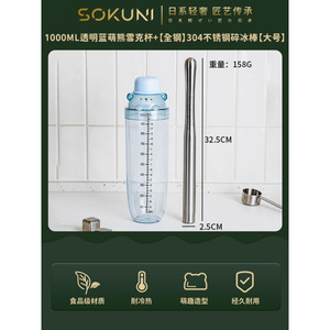 1000 ミリリットル透明ブルーかわいいクマシェーカーカップ + 304 鋼壊れたアイスキャンディー 32.5 センチメートル全鋼 + 304 バー