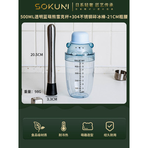 500 ミリリットル透明ブルーかわいいクマシェーカーカップ + 304 スチール砕いたアイスキャンディー 21 センチメートル厚いウエスト + 304 バースプーン +