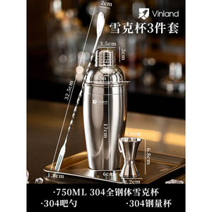 750ml オールスチール 304 シェーカーカップ + 32cm 304 スチールロッド + 304 バースプーン