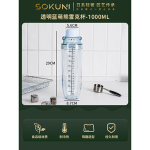 透明ブルーのかわいいクマのシェイクカップ-1000ml【アイスキューブクリップ無料】