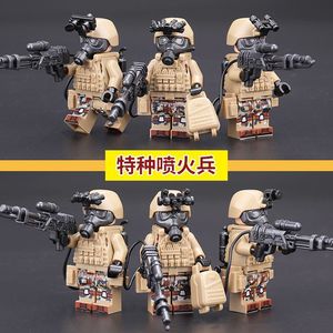 レゴ特殊部隊ビルディングブロック、ミニフィギュア、バイオベースガスマスク、SWAT火炎放射兵、子供用おもちゃ、ディロンと互換性があります。