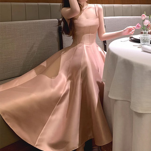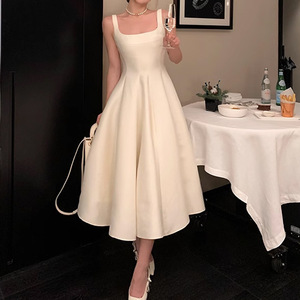 ZHOYUE(注:ZHOYUEはZHOYUEのイニシャルです) | ヘプバーンスカート dio* ショースタイル シルクウール光沢ウエストサスペンダードレス スクエアカラー