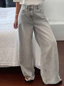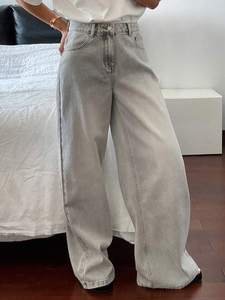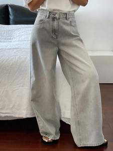 女性用レトロレイジーワイドレッグパンツ、秋のアメリカンスタイルの新しいハイウエストホットガールドレープルーズで多用途なフロアレングスストレートジーンズ