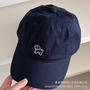 カラーブロックのかわいい子犬の刺繍入りベースボールキャップ、オールネイビーブルー
