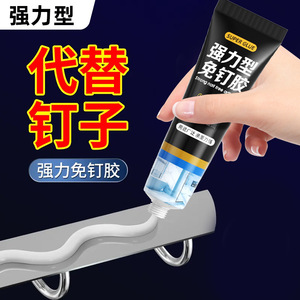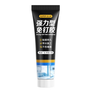 黄色と黒のラベルの釘不要接着剤、壁タイル用のユニバーサル釘不要接着剤、強力な接着剤、防水性と防湿性のガラスドアと窓の接着剤