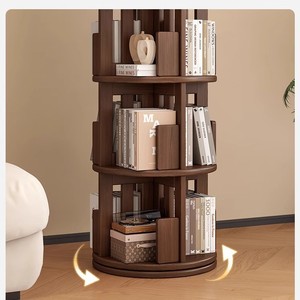 全無垢材ラバーウッド回転本棚 360 度本棚収納ホームリビングルーム子供床置き棚