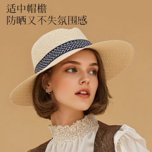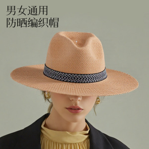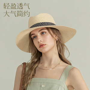 フラットトップ麦わら帽子カジュアルサンハット女性の日焼け止め帽子新しい屋外通気性大きなつばフレンチ多用途サンハット