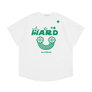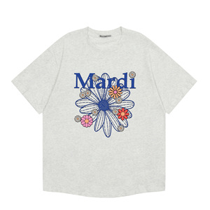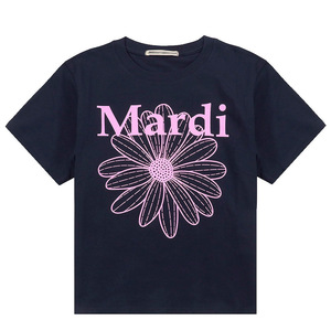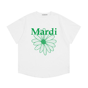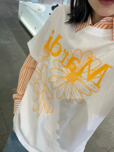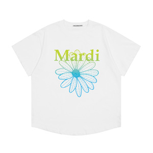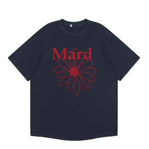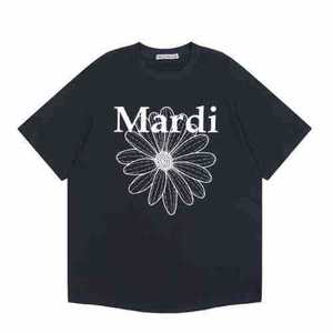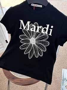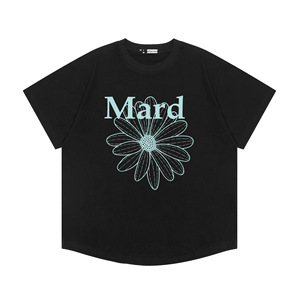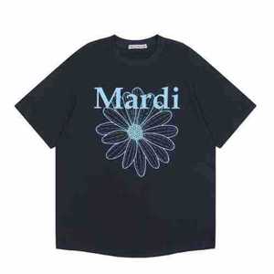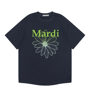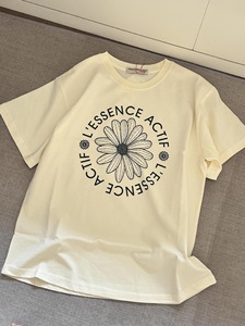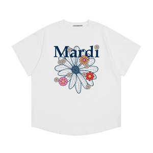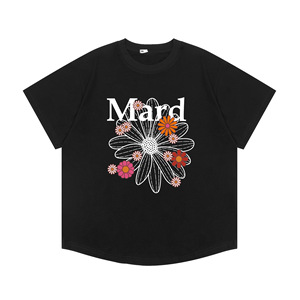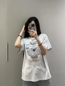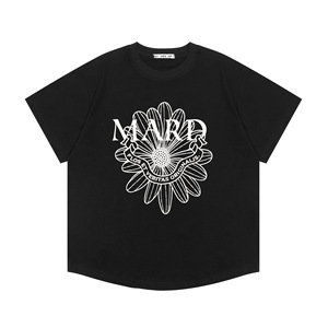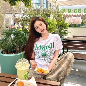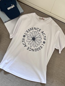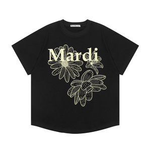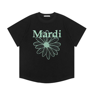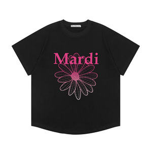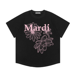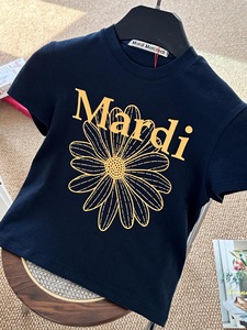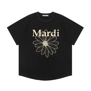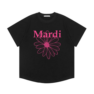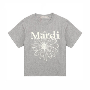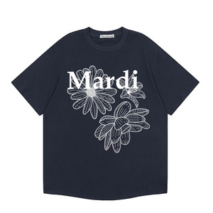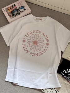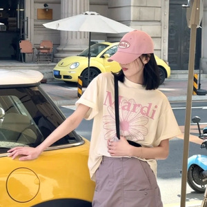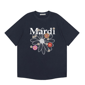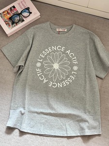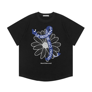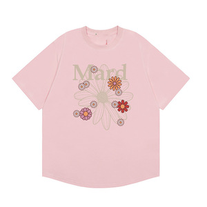 韓国マルディトレンディな半袖フラワープリントゴールドハイシルバー夏ラウンドネック純綿ルーズTシャツトップトレンディ