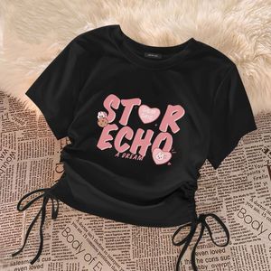 女の子の多用途アイスシルク半袖Tシャツ夏の新しいスタイルの女の子中大子供用巾着レターデザイントップインスタイル
