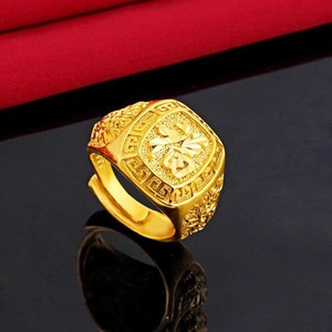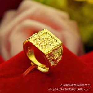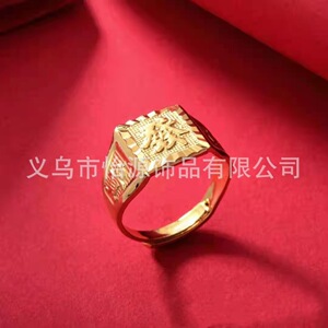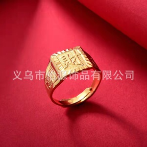 高模工場直売沙金指輪男女のファッションの経典指環覇気口福発財金メッキ指輪