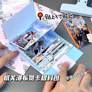 【新スタイル】花火子猫滝グリーティングカードカスタム素材パッケージ自家製告白バレンタインデーグリーティングカードメカニズムブック