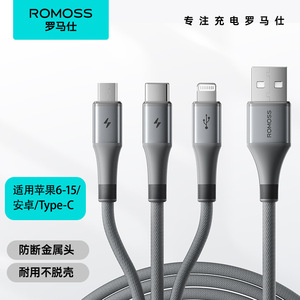 Romans スリーインワンデータケーブル 6A100W 高速充電 Apple Huawei Android 1 対 3 車の充電ケーブルに適しています
