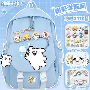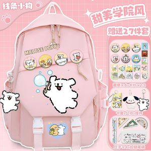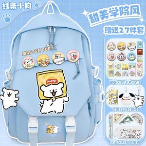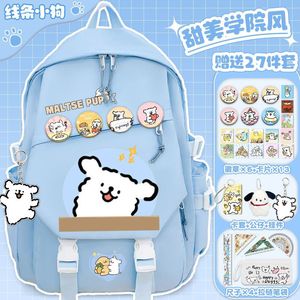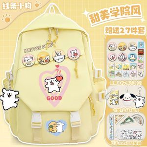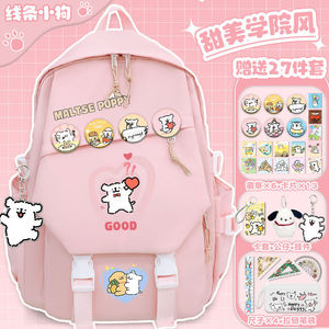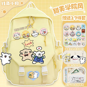 线条小狗小学生卡通书包初中大容量女生百搭高颜值双肩包减负背包
