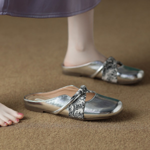 205-17 新しい中国風フラットトゥハーフスリッパ女性の夏のアウターウェアスリッポンメリージェーン多用途サンダル