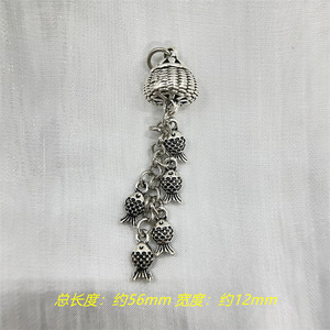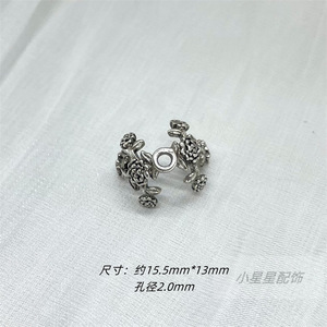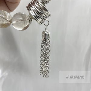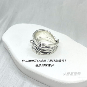 水晶配饰复古合金仿银做旧工艺古典开口戒指树叶流苏提溜配件