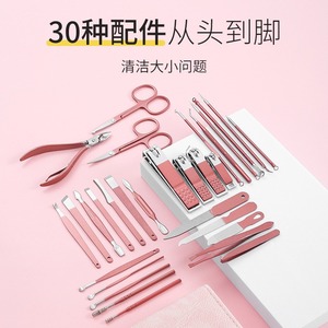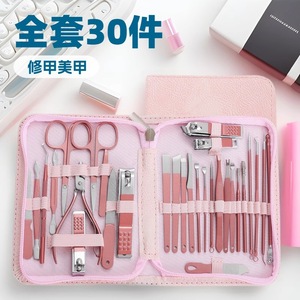 国境を越えた人気のローズゴールド爪切りセット ジッパー付き 30点セット マニキュア専用ツール 角質はさみ 爪切り