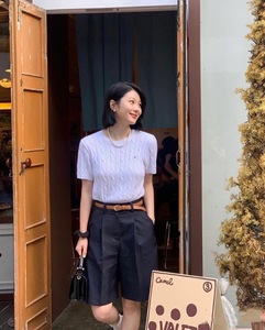 ハイバージョン/ラフニット半袖レディースポニーマーク刺繍ラウンドネックTシャツハイエンド西洋スタイル薄い戦争馬セーター