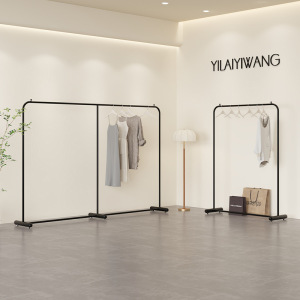 シンプルな床置き衣料品店ディスプレイラック黒棚洋服ハンガー婦人服店中島棚ディスプレイラック