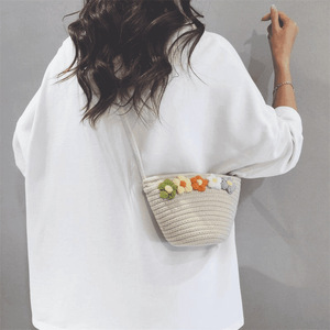 海辺のビーチ草編みバッグ女性2025新夏小衆編み携帯バッグカジュアル斜め掛け小バケツバッグ